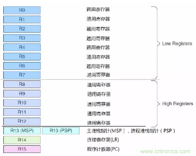 33、MSP是系統復位后使用的堆棧指針,PSP由用戶的代碼使用。兩個堆棧指針為4字節對齊?。?/div>