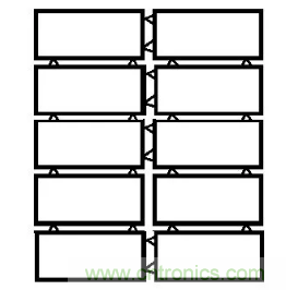 其中的:X*Y代表x方向和y方向,2*5則表示每行放兩塊、每列放5塊,以這樣的方式拼接起來,因為每塊單板與單板之間所連接的部分類似V字形,故而得名V-割。如下圖所示: