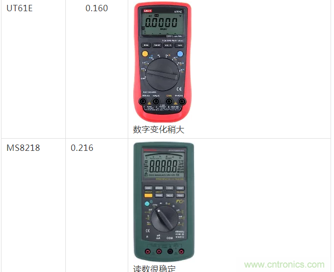 那么,使用數字萬用表是否可以測量隨機噪聲大小呢?在分析之前,可以先對比幾種不同的萬用表對隨機噪聲測量的結果。