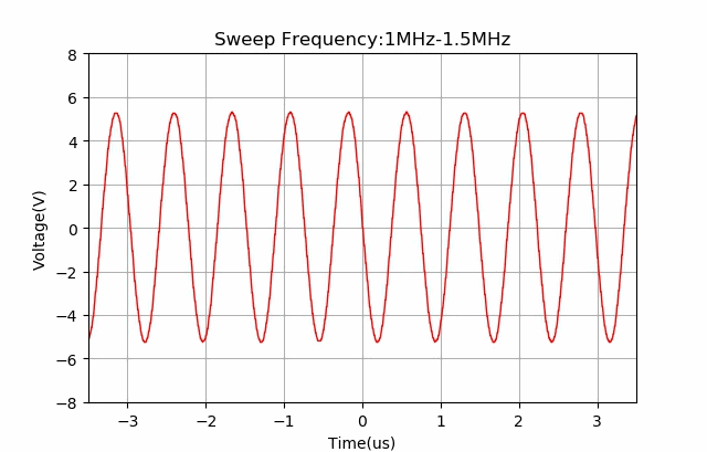 不同萬用表測量交流頻率的上限各不相同。下面使用DS345產生10kHz到6MHz,有效值為1V的正弦信號,使用DM3068數字萬用表交流電壓檔測量信號的幅值。