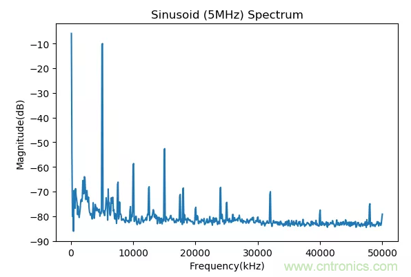 DS345產生的5MHz的正弦信號的頻譜