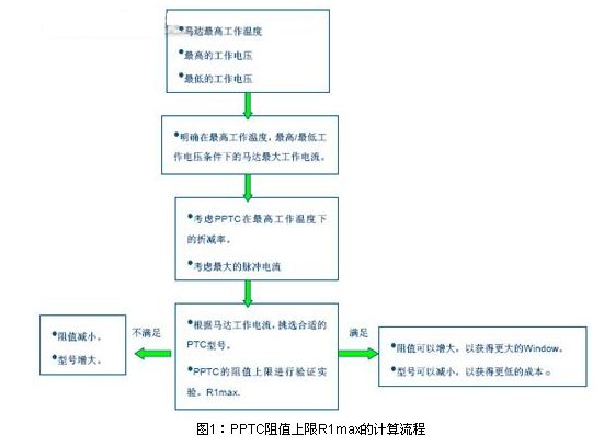 首先要確認PPTC的阻值上限R1max。下圖1為PPTC阻值上限R1max的設(shè)計流程。