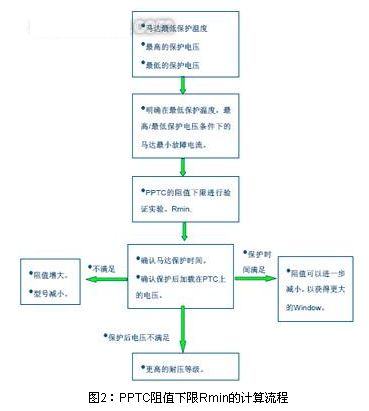 其次確認PPTC的阻值下限Rmin。下圖2為PPTC阻值下限Rmin的設(shè)計流程。