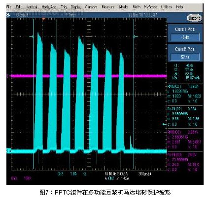 由以上的試驗證明,TE connectivity公司研發(fā)出的LVR PPTC和功率電阻集成在一起的組件既可以滿足馬達的保護時間的要求,又可以在一次完整的磨制豆?jié){的周期內(nèi)不誤動作,達到了設(shè)計和保護要求。