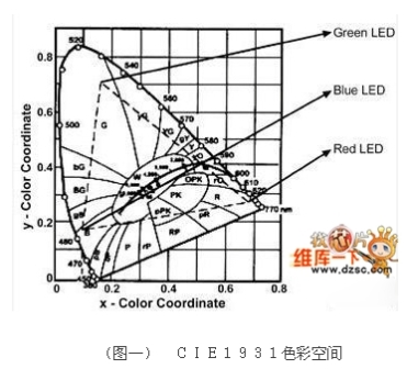顏色的選擇相當簡單,以上述的例子為例,目標色D65以感測器電壓的方式指定,在實際應(yīng)用上,目標色可以CIE 1931xyY系統(tǒng)的座標指定,當然也可採用如CIE uvY與CIE RGB等其他色彩系統(tǒng)。例如,要選擇照度E做為目標色,只要將(x, y, Y)=(330, 330, 200)的值送到ASSP中適當?shù)臅捍嫫骷纯赏瓿伞?br />