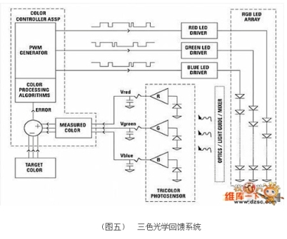 雖然RGB發(fā)光系統(tǒng)相當具有吸引力,但也面臨了這項技術(shù)廣泛使用的挑戰(zhàn)限制,因此就引起了能夠?qū)⑷鈱W(xué)回饋這類復(fù)雜情況隱藏在一個簡單使用介面背后的需求,以下將介紹ASSP如何達成這個要求。