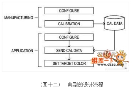 在生產(chǎn)階段,系統(tǒng)可以透過使用標準的CIE相機進行調(diào)校,調(diào)校資料必須儲存在一個外部的短暫的記憶體中,而系統(tǒng)在導(dǎo)入到應(yīng)用后并不需要進行調(diào)校程序。在應(yīng)用上,使用者首先對設(shè)備進行組態(tài),接著將先前儲存的調(diào)校資料寫入調(diào)校暫存器,這是一個簡單的讀出然后寫入的程序,完成后,系統(tǒng)就可以接受目標色的輸入。
