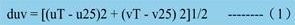 其中:(u25, v25)=1976 CIE u, v在25oC時的色度座標;