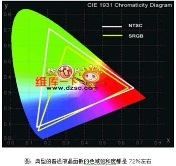 色域的呈現主要在背光的選擇上,眾所周知,液晶面板本身并不發光,而是必須透過背光的光線才能夠顯示畫面,傳統CCFL燈管在螢光材質上的限制,紅光呈現能力偏弱,加上所搭配的彩色濾光片的混色效果較差,最終呈現的色域飽和度不佳,導致目前主流的LCD監視器或電視在色域呈現能力上不足,多僅能達到72%NTSC左右。