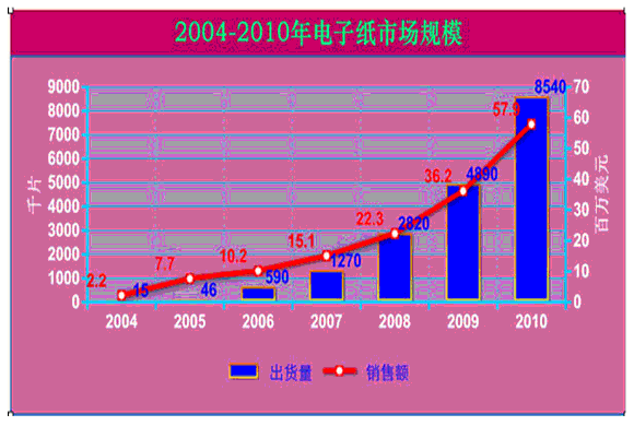 表1 2004-2010年電子紙市場規模(資料來源:富士chimera總研)