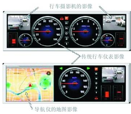 以上介紹的內容大多集中在汽車導航儀的液晶顯示器,最近幾年汽車廠商提出,利用液晶顯示器取代傳統(tǒng)機械式行車信息指針儀表。
