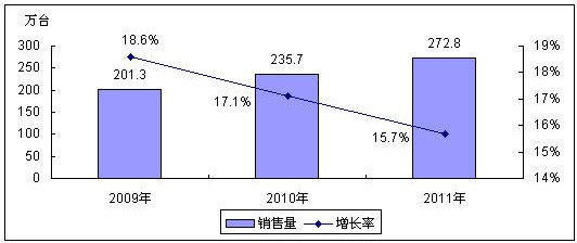 圖1  2009-2011年中國數碼攝像機銷售量預測