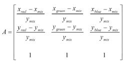 為您的系統設計LED控制機制,面對的是基本的線性代數。在得到您LED的色度坐標后,您必須先建立一個矩陣,找出所要色彩點之間的delta值,如公式1所示。公式中色彩下標字是LED的顏色,mix下標代表您想要呈現的顏色。