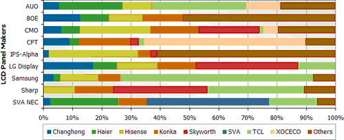 - 根據統計數據分析Skyworth與TCL的面板供貨商相對集中,以Skyworth來說,估計有90%面板來自CMO與LG Display二家面板廠;而 TCL估計有將近85%面板來自于Samsung與AUO。