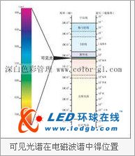 為對光的色學性質研究方便,將可見光譜圍成一個圓環,并分成九個區域(見圖),稱之為顏色環。