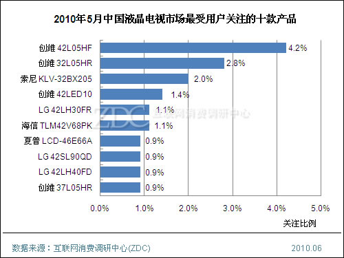 (圖)2010年5月中國液晶電視市場最受用戶關注的十款產品