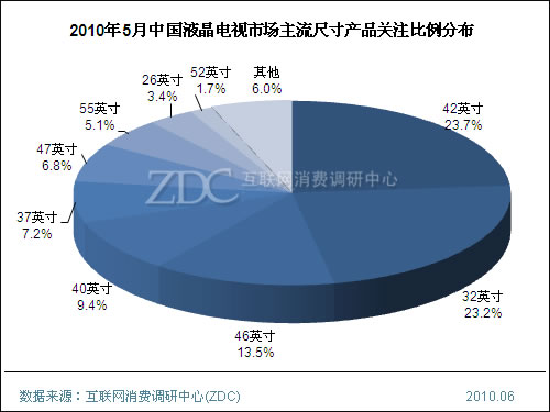 (圖)2010年5月中國液晶電視市場主流尺寸產品關注比例分布