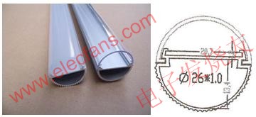 這種半圓柱的表面積為:2πR*h/2=πR*h。對于T8燈管來說,它的直徑為26mm,所以半徑為13mm。1.2米的T8燈管,其表面積為:π*1.3+120=490cm2,我們知道LED散熱器的表面積通常要求60cm2/W。,所以這種半鋁管只能散8W左右的熱量。而T8型LED日光燈通常輸入功率為20W,假定LED的發光效率只有20%,那么有16W的輸入電功率都變成熱量。而現在只能散去8W的熱量,而還有8W的熱量無法散去,其結果就是使得LED的結溫升高,壽命縮短。