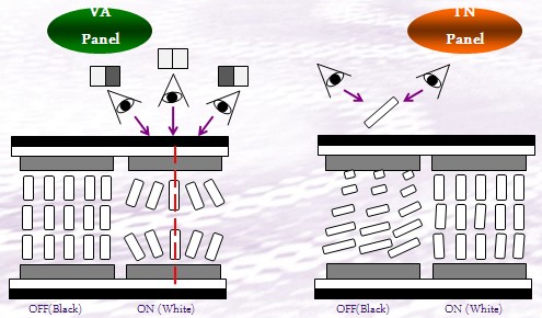 在TV產(chǎn)品中已經(jīng)得到大范圍應(yīng)用的VA面板,以其能與IPS屏相抗衡的178°超廣視角聞名。此次明基使用的AMVA面板來(lái)源于MVA面板,這種技術(shù)是垂直取向陣營(yíng)的代表,最早由富士通公司開發(fā),并且由此衍生出了Super-MVA(奇美采用)和MVA-Premium(富士通、友達(dá)光電采用,近期SHARP合并富士通的LCD部門后也獲得該技術(shù))。在MVA技術(shù)中,其液晶分子的長(zhǎng)軸在未加電時(shí)不像傳統(tǒng)TN模式那樣平行于屏幕,而是垂直于屏幕,并且每個(gè)像素都是由多個(gè)這種垂直取向的液晶分子疇組成。當(dāng)電壓加到液晶上時(shí),液晶分子向不同的方向偏轉(zhuǎn),這樣從不同的角度觀察屏幕都可以獲得相應(yīng)方向的補(bǔ)償,也就改善了可視角度。