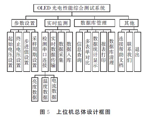 系統是集電壓、電流、亮度和溫度的自動采集、預處理、數據存儲為一體的綜合信息平臺。使用RS-232通信實現程控電源、下位機和計算機的通信,實時獲取亮度、溫度、電流數據,把當前電壓下對應的亮度、溫度和電流值存入數據庫中,并繪制出實時曲線。在歷史數據查詢中,可以對不同結構的OLED器件的測量結果進行對比分析。