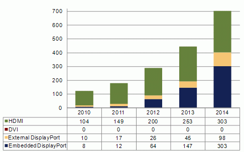 - 移動電腦搭載Embedded DisplayPort界面的比率將在2013年達到35%。