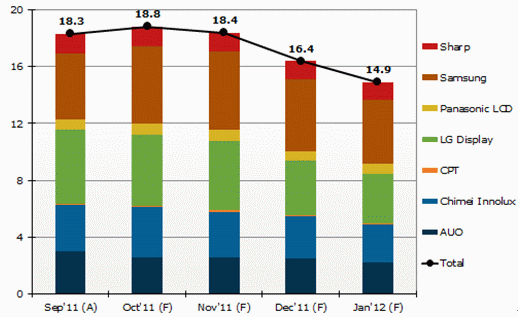 據(jù)DisplaySearch研究總監(jiān)Deborah Yang表示:“面板廠基于銷售目標(biāo)調(diào)整產(chǎn)能利用率,并對于市場前景的預(yù)期可能比實(shí)際市場需求更高,由此很有可能導(dǎo)致供過于求。10月假期市場已經(jīng)基本飽和,今年12月和明年1月大尺寸面板出貨量預(yù)計(jì)將下滑。”