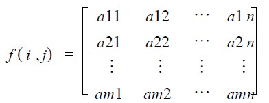 假設(shè)該數(shù)組的元素為:aij , 表示某矩形區(qū)域單位面積的照度值。并假設(shè)該數(shù)組為: m ×n (即m行n 列) 。f ( i , j) 稱(chēng)為照度矩陣: