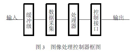 CCD 傳感器將某一區(qū)域的照度值傳送給圖像處理控制器, 控制器將獲取的數(shù)據(jù)進(jìn)行運(yùn)算。即計(jì)算區(qū)域的平均照度, 根據(jù)使用要求判別某象素值或某局部區(qū)域象素平均值是否在要求的域值內(nèi), 如果是在要求的域值內(nèi), 則認(rèn)為照度合適;反之, 說(shuō)明照度過(guò)大或過(guò)小。控制器根據(jù)需要控制執(zhí)行機(jī)構(gòu)進(jìn)行調(diào)光, 達(dá)到合適的照度要求為止。判斷是否有人走動(dòng)的方法是:將過(guò)道(人走動(dòng)所經(jīng)過(guò)的) 區(qū)域的圖像分割出來(lái), 該區(qū)域的象素值在沒(méi)有人走動(dòng)時(shí)基本不變或變化很小。當(dāng)有人走動(dòng)時(shí), 該區(qū)域的象素值變化較大。假設(shè)t0 時(shí)刻沒(méi)有人走動(dòng)時(shí), 該區(qū)域象素值分布為f t0 ( x , y) , 經(jīng)過(guò)δt (如:1 S ) 時(shí)間后,該區(qū)域的象素值分布為f t1 ( x , y) , 計(jì)算差值:δf( x , y) = f t1 ( x , y) - f t0 ( x , y) 。如果δf ( x ,y) 內(nèi)各象素值的絕對(duì)值之和較大, 可以認(rèn)為是有人在走動(dòng);如果δf ( x , y) 內(nèi)各象素值的絕對(duì)值之和較小或?yàn)榱銜r(shí), 則可認(rèn)為沒(méi)有人走動(dòng)。從而控制燈光的有無(wú)。圖像處理控制器的原理框圖如圖3 所示。