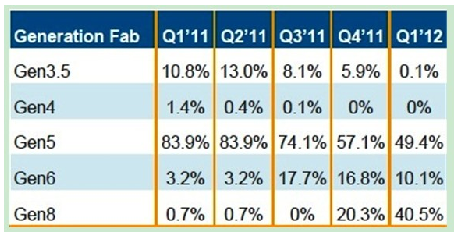 友達、新奇美、京東方、華映和瀚宇等廠商計劃于 2012年將更多資源投入到生產平板電腦面板上。盡管五代線和更低世代線主要以生產小筆電和平板電腦面板為主,但到 2012年第一季,預期有超過一半的小筆電和平板電腦面板將放在六代線和八代線上生產。