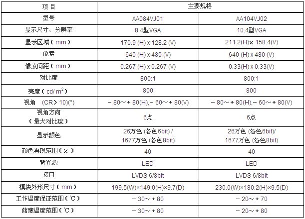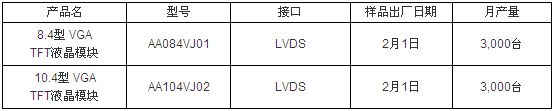 本公司為滿足上述需求,本次特發售帶有LVDS接口,具有高亮度、高對比度、寬視角等特點的8.4型、10.4型VGA液晶模塊。