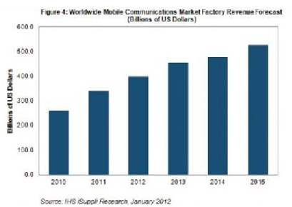 - 2012年移動通信市場的工廠營業(yè)收入預計達到3980億美元