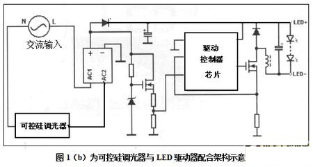 所以它是LED照明常用方法,見圖1(b)所示可控硅調(diào)光器與LED驅(qū)動(dòng)器配合架構(gòu)示意。