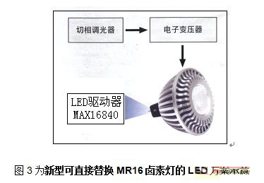 它應(yīng)用了新型MAX16840型LED驅(qū)動(dòng)器,該芯片的架構(gòu),使用了電子變壓器和切角調(diào)光器以實(shí)現(xiàn)無(wú)閃爍調(diào)光,形成了獨(dú)特的LED驅(qū)動(dòng)器方案,從而可實(shí)現(xiàn)兼容大多數(shù)電子變壓器和切角調(diào)光器MR16的LED燈設(shè)計(jì)。它在技術(shù)上確保無(wú)需對(duì)現(xiàn)有電路架構(gòu)做任何修改就可用LED換代燈直接替換MR16鹵素?zé)簟T摲桨笧槭袌?chǎng)應(yīng)用掃除了一大障礙,使終端用戶能夠以極低的配置成本獲得LED照明的全部?jī)?yōu)勢(shì),即:是一種確保無(wú)閃爍并可調(diào)光操作,又能兼容于絕大多數(shù)電子變壓器和切角調(diào)光器,可直接替代MR16的LED換代方案;更無(wú)需更改現(xiàn)有的電氣架構(gòu),又縮小板尺寸并降低BOM成本。那末LED換代燈構(gòu)建設(shè)計(jì)是如何實(shí)現(xiàn)吶?