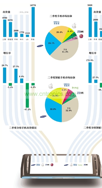 就在蘋果、三星上演龍虎斗的同時,還有一大批廠商冒出來。例如華為、中興這樣的通信設(shè)備商,它們采取“農(nóng)村包圍城市”的戰(zhàn)略,從低端市場起步,步步緊逼中高端市場。