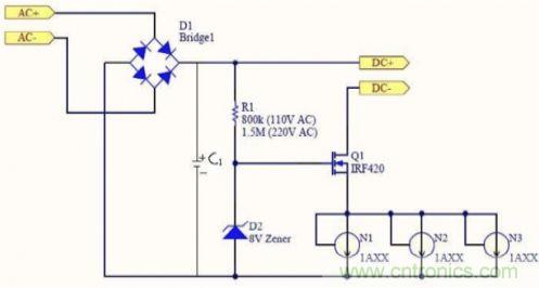有不少現成的恒流二極管的耐壓往往不夠高,當然最簡單的方法就是用兩個或幾個恒流二極管串聯。同樣這樣成本就會增高。也可以用增加一些其它器件來提高。