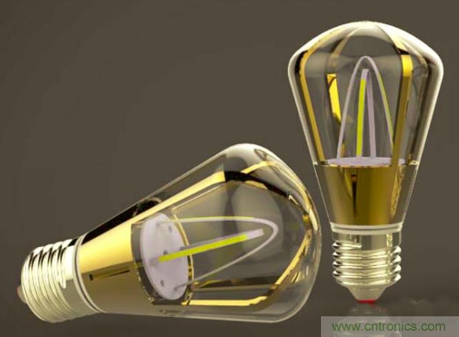今天的LED燈絲燈已經(jīng)可以做到像白熾燈一樣調(diào)光,而且無(wú)頻閃,量產(chǎn)水平普遍達(dá)到5瓦,最近顏重光高工又對(duì)LED燈絲燈做出了重大的設(shè)計(jì)創(chuàng)新,LED燈絲做在鋁基板上,不充氣,PC外罩下面配一圈鋁散熱器,色溫穩(wěn)定性做得比現(xiàn)有產(chǎn)品還要好,而且外觀極其華麗奪目,很像一款藝術(shù)品,連我看了都有了購(gòu)買的沖動(dòng)。