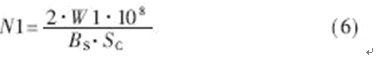 其中,BS為磁感應強度,SC為脈沖變壓器磁芯有效截面積:BS=104Gs,SC=0.847cm2。則由(6)式可知: