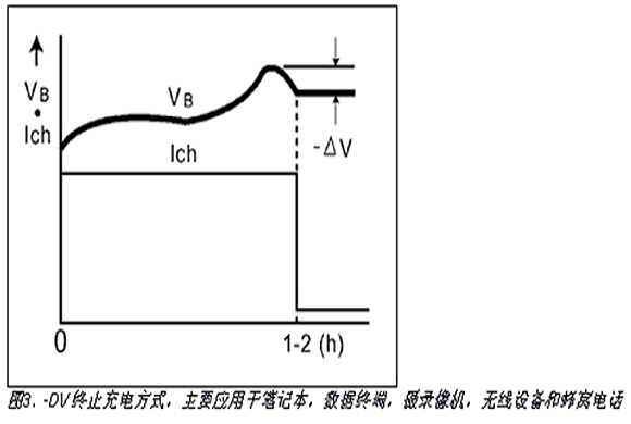 - 通過檢測電池充滿時的電壓跌落終止充電。