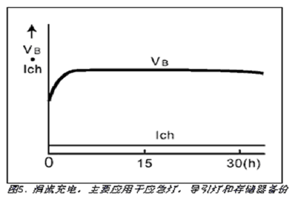 較高的充電電流并不會使充電時間縮短太多。較高的充電電流能較快達到電壓峰值,但是浮充需要較長時間。通常,浮充時間是初始充電時間的兩倍。
