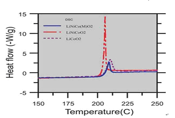 (圖六) 鋰鎳鈷材料經(jīng)由納米氧化物鍍層表面處理后之DSC放熱圖