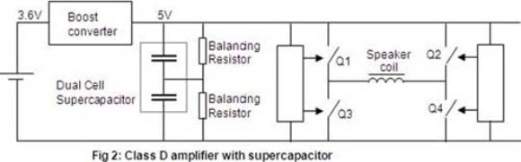 圖2:帶有超級電容的D類放大器架構。