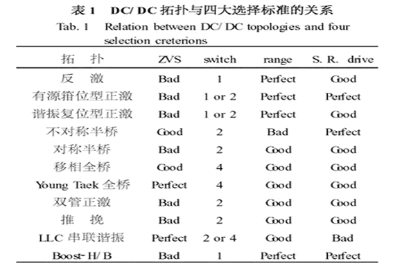 低電壓輸出,所以需要采用同步整流技術(shù)。 變化范圍非常寬。 查看表2 ,發(fā)現(xiàn)反激、有源箝位型正激、諧振復(fù)位型正激、對(duì)稱半橋、雙管正激、推挽式變換器、Boost-H/B是合適的候選拓?fù)洹?因?yàn)槭堑蛪狠斎霙](méi)有ZVS 的限制,拓?fù)涞倪x用就自由很多。 從現(xiàn)有的產(chǎn)品來(lái)看以上的幾種DC/DC 拓?fù)涠加胁捎谩?由表1可知,最適用的拓?fù)涫怯性大槲恍驼ぁ⒅C振復(fù)位型正激、Boost-H/B。