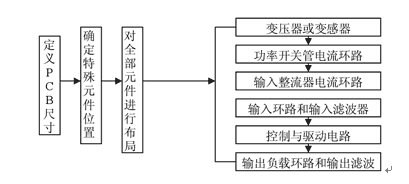 敏感線路主要是指控制電路和直接與干擾測量設備相連的線路。要降低干擾水平,最簡單的方法就是增大干擾源與敏感線路的間距。但由于受電源尺寸的限制,單純的增大間距并非解決問題的最佳途徑,更為合理的方法是根據干擾電場的分布情況將敏感線路放在干擾較弱的地方。PCB抗干擾布局設計流程如圖6所示。
