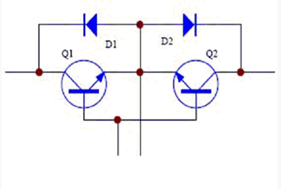 旁路開關(guān)常使用繼電器和可控硅。繼電器在中小功率的UPS 中廣泛應(yīng)用。優(yōu)點(diǎn)是控制簡(jiǎn)單,成本低,缺點(diǎn)是繼電器有轉(zhuǎn)換時(shí)間,還有就是機(jī)電器件的壽命問題。可控硅常見于中大功率UPS 中。優(yōu)點(diǎn)是控制電流大,沒有切換時(shí)間。但缺點(diǎn)就是控制復(fù)雜,且由于可控硅的觸發(fā)工作特性,在觸發(fā)導(dǎo)通后要在反向偏置后才能關(guān)斷,這樣就會(huì)產(chǎn)生一個(gè)最大10ms的環(huán)流電流,如圖2。如果采用IGBT,如圖3,則可以避免這個(gè)問題,使用IGBT 有控制簡(jiǎn)單的優(yōu)點(diǎn),但成本較高。其工作原理為:當(dāng)輸入為正半周時(shí),電流流經(jīng)Q1、D2,負(fù)半周時(shí)電流流經(jīng)D1、Q2。