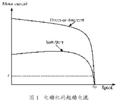 為了應對這些不良的影響,起動階段施加到感應電機上的電壓要被控,這意味著起動電流和相應的起動轉矩會受到限制。不同的起動方式對電機起動電流的影響如圖1所示。