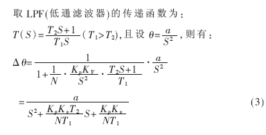 在壓控振蕩器中,因頻率可以是變量,故它們不是簡單的乘以時間的關(guān)系,而是對時間的積分。除壓控振蕩器的積分作用外,濾波器環(huán)節(jié)中還需有積分項,這樣才可以使ud的直流成分穩(wěn)定為0,從而θ-θ0的差可以穩(wěn)定為π/2。uc的值由濾波器中的積分項保持作用維持。另外,濾波器中若只有積分項,將出現(xiàn)等幅振蕩,故需要增加一個比例項。其數(shù)學模型如圖3所示。