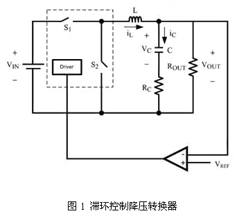 根據(jù)可變結(jié)構(gòu)控制理論來(lái)分析滯環(huán)控制降壓轉(zhuǎn)換器,得出輸出電壓紋波的增加和相移是由于輸出電容器的過(guò)小ESR所致。這也解釋了為何ESR較小的陶瓷電容器通常都不會(huì)使用在滯環(huán)控制降壓轉(zhuǎn)換器上。