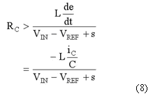 其中,iC是輸出電容器的電流,它在0A的穩(wěn)態(tài)點(diǎn)周?chē)a(chǎn)生紋波。將2ICMAX定為紋波電流iC的峰到峰的最高值。那當(dāng)s>0時(shí),要獲得ds/dt<0的足夠條件為: