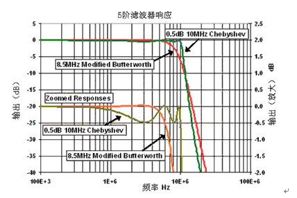 因此,我們必須在電平平坦度、截止頻率、衰減和群延遲差異間取得平衡,以獲得合適的視頻濾波器。大家一致認為,巴特沃思濾波器對消費類電子視頻來說是一種較好的平衡型濾波器,電平響應實現了最大的平坦度,衰減率適當,群延遲也不錯。它雖說不上是最理想的,但通常對系統而言已經足夠好了。