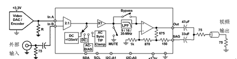 • 線路驅動器放大器采用AC耦合,消除任何可能的DC偏置電流